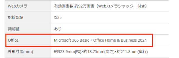 Officeはバージョンが選択できるモデルもあれば、Officeの有無だけが選べるものもあります。