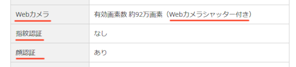 また、カメラシャッター(プライバシーシャッター)が搭載されているかどうかも、合わせて確認することができます。