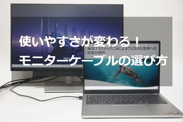 ノートパソコンとモニターを接続するためのモニターケーブルにはいろいろな種類がありますが、上手に選ぶととても使いやすくなります。