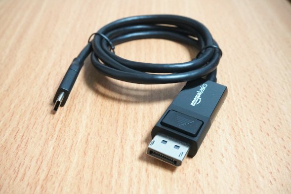 通常は、上の2つのケーブルのどちらかを使えばほとんど大丈夫なのですが、USB Type-CとDisplayportを結ぶケーブルもあります (Displayport ⇔ USB Type-C)。