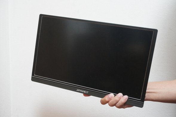 モバイルモニターは「モバイル」と銘打ってあるように、気軽持ち運ぶことができるくらい軽いモニターです。実際、筆者が所有している15.6インチのモニターは、片手で楽々持つことができます。