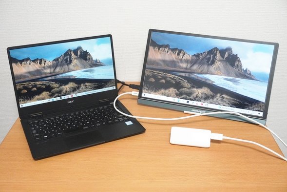 この場合、ノートパソコンに電源供給とディスプレイ出力が可能なUSB Type-Cポートが搭載されている必要があります。