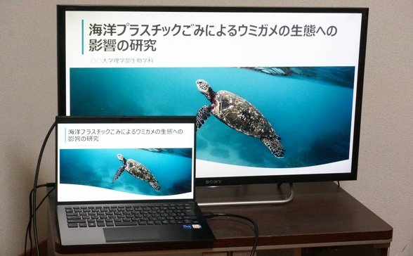USB Type-Cケーブルを使ってディスプレイ出力を行ったところ。