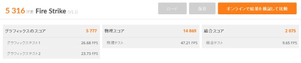 グラフィックスの性能を計測しました。一般的なノートパソコンとしては、高いスコアとなりました。