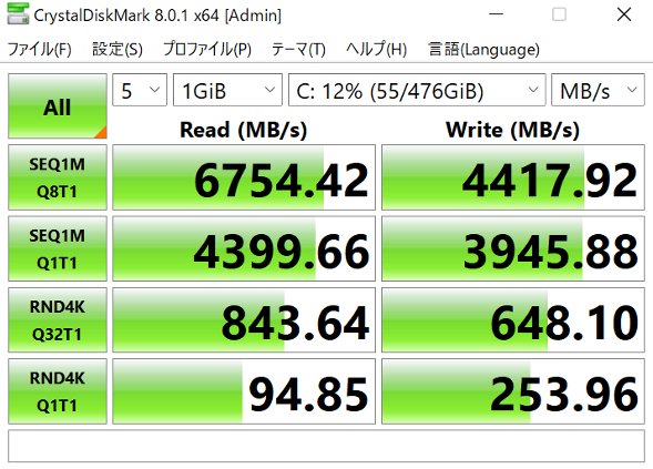 ストレージの速度を測定しました。今回のレビューで使用したのは第四世代ハイスピードSSDとなっていて、読み書きとも非常に高速でした。これまでレビューした中で、最も高速な部類に入ります。
